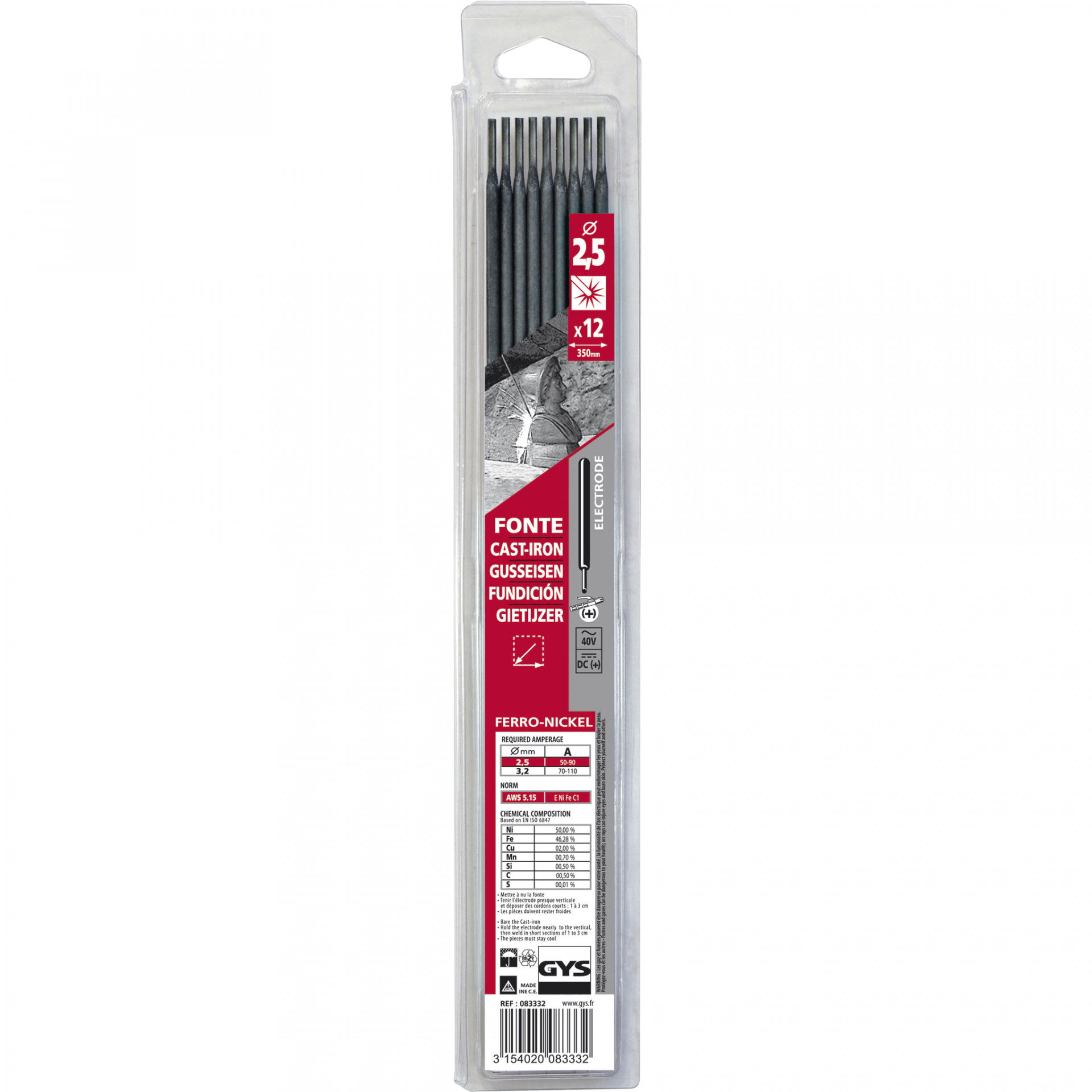 GYS FONTE öntvény hegesztő elektróda, 2.5 mm, 12 szál/csomag
